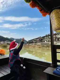 🌞 There are cruise ships by the river. Drinking tea on the boat is a unique experience.