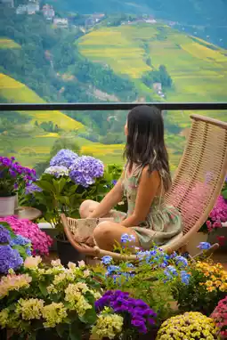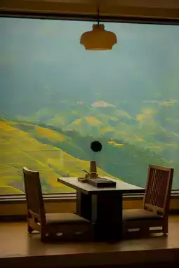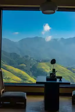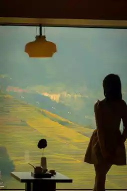 Our room has a super large floor-to-ceiling window, and outside the window is a whole piece of terraces! It's really facing the terraces, you can see the excellent scenery without going out, it's so beautiful!