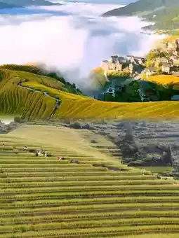 The best time to visit Longji Rice Terraces is from June to October each year. At this time, the rice in the terraces has matured, presenting a golden scene, which is very spectacular.