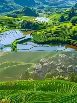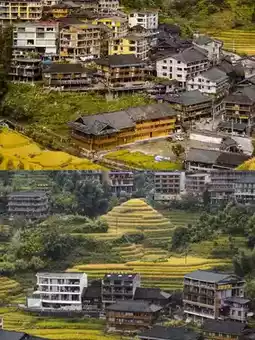 - Guzhuang Village Terraces: Relatively simple, with the largest Zhuang-style stilted building complex in Guangxi.