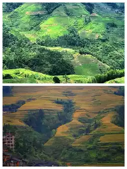 2. Every year in October, around the National Day, the rice ripens and turns yellow, creating a golden scene