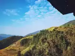 From the viewing platform, the breathtaking scenery of Jinkeng Dazhai Terraced Fields unfolds before your eyes. Cable cars glide through the sky, transporting visitors into a dreamlike world. The terraces beneath your feet resemble golden staircases stretching from the mountain base to the clouds, as if leading to a mystical fairyland. At dusk, the sunset casts a rosy-purple glow over the fields, painting the world in enchanting hues, leaving you spellbound.