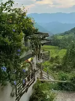 Every household in Longji serves **bamboo-tube chicken🐔 and rice**. We tried **"Mountains and Rivers"** near Jinkeng Village Committee—**delicious** with a great second-floor view!