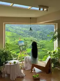 We stayed at **Yunya Qinqi Sky Garden Panorama Homestay (Jinkeng Branch)** (800-1500💰). The first-floor decor is **Instagram-worthy**, like stepping into a Ghibli summer scene. Even non-guests can visit for afternoon tea☕️ and photos📷.