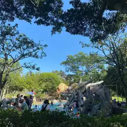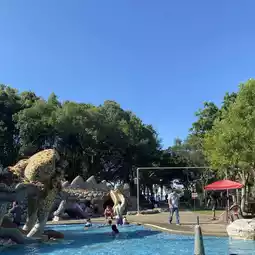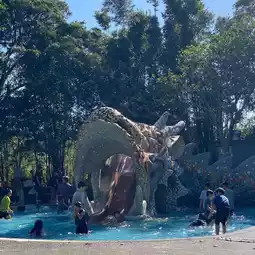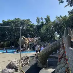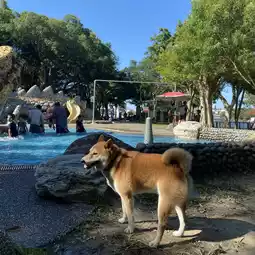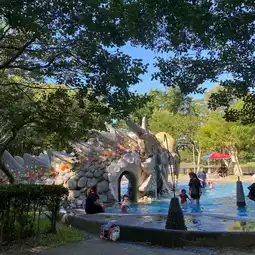 There is a free water play area with a shower head for washing the body, and two lifeguards are around, so it is very safe! Summer is a great time for kids to play in the water and slide to cool off. Unfortunately, my dog can’t go in the water. She really wants to go swimming😆