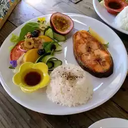 The salmon is a normal frozen fillet, but it was over-grilled today, so it tasted dry and hard, but the lettuce salad on the side was pretty delicious! The fruits are all very sweet~ If you don’t have enough rice, you can get more for free