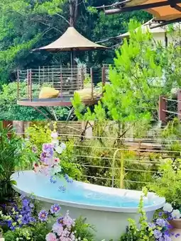3⃣️Cliff Hotel: A tented mountain house at an altitude of 900m, with a suspended mesh bed and an outdoor bathtub 🛀.
