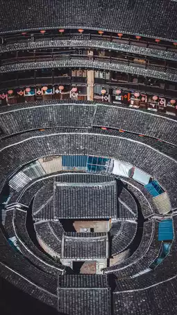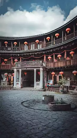 1️⃣ Jiqing Building: As the oldest and most special round tulou in Yongding, the interior of Jiqing Building is well maintained and uninhabited. The clean and tidy red lanterns are great photo elements. You can climb the building and take photos of the internal structure and details of the tulou from different angles to feel the traces of time. From the fourth floor, you can also enjoy a panoramic view of the tulou group.