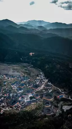 2️⃣ Songlian Pavilion Viewing Platform: Located on a small hill opposite the tulou group, you can overlook the entire Chuxi Tulou group from here, capturing the scattered tulou and the surrounding mountain and water scenery in one shot. It is the best place to take large-scale photos.