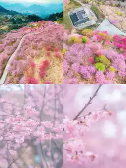 Terraced fields are intertwined with cherry blossoms. In the pink sea of flowers, you can also experience fun activities such as picking and camping.