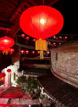 3. Sunset is magic for photos! Red lanterns and warm lights against the circular buildings create 100% insta-worthy moments.