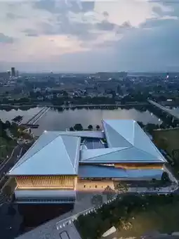 The architectural design of the exhibition hall integrates elements such as courtyards, inner gardens, grottoes, wooden components, brick walls, and ink roofs, with an overall style that is classical and simple