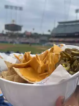 The nachos and hot dogs 🌭 were as delicious as rumored! You can even take home the plastic cups and the cap-shaped plates that the nachos come in. They make for great souvenirs 🧢.