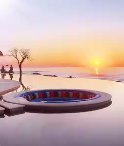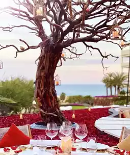 Above the boundless outdoor swimming pool, in the arched space, decorated with various tree carvings, lanterns hanging from tree branches, and bright colors, accompanied by lively Mexican music... Located by the beach, with the magnificent backdrop of the Sea of Cortez, here you can enjoy watching the sunset while indulging in barbecue, ceviche, various seafood, and traditional Mexican cuisine!