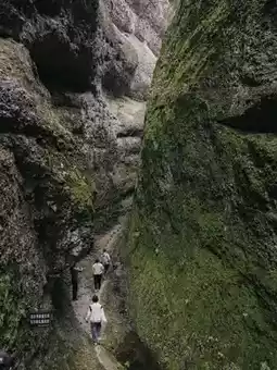 ⛰️Under the 1800-meter cliff, there is a huge V-shaped crack. Looking up is a ray of sky, and under your feet is a narrow valley