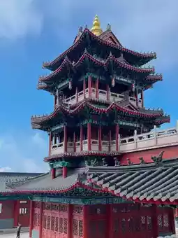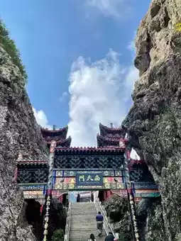 ✅Coming down from Funiu Mountain, you will soon reach the iconic attraction of the top of the mountain, the 'Golden Top Taoist Temple Group'.