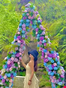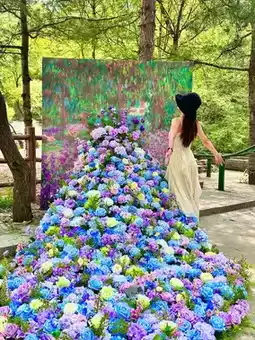 4. In about 40 minutes, you will reach the pine forest area, which is the main venue, with the romantic Monet's Garden unfolding before your eyes, and you definitely should not miss the popular water swing, it's too beautiful.