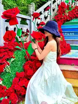 5. Continue forward to the cable car station, and you will see the romantic rose garden area, as well as the strawberry bear wall, which is especially good for taking photos and producing great shots.