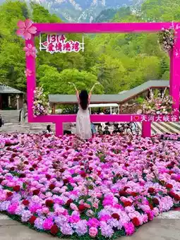 2. Moving forward, there is a group of rose waterfalls at the entrance of the scenic area, which is both romantic and magnificent in the mountains.