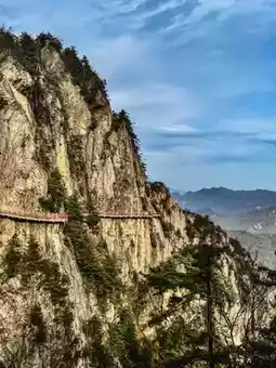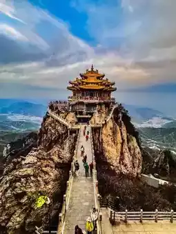 The description "Mount Laojun: a fairyland on earth, a palace in heaven" perfectly captures the breathtaking scenery and Taoist ambiance of Mount Laojun in Luoyang, Henan. As a sacred Taoist site, its rolling sea of clouds and towering peaks create a mystical landscape where the golden-roofed temples appear and disappear in the mist, resembling celestial palaces descended to the mortal world, making visitors feel as if they've stepped into a mythical realm.
