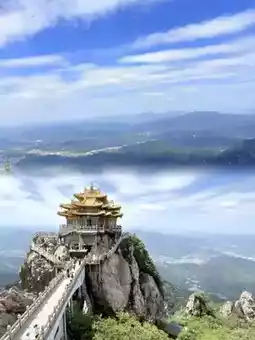 1. Golden Summit Taoist Temple Complex: The iconic landmark of Laojun Mountain. The golden temples shine brilliantly in sunlight and appear like fairyland when shrouded in mist. The panoramic mountain view from Zijin Summit truly embodies the poetic phrase "all other peaks look dwarfed".