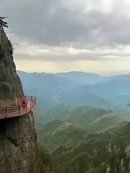 - Weather and temperature: At the foot of the mountain, it’s 13°-23°C, perfect for long sleeves plus a light jacket, and you might even sweat a little walking; at the summit, it suddenly drops to about 10°C, and the wind chills you to the bone. I saw someone shivering in short sleeves at the golden summit—don’t be lazy, bring a thick jacket! Today it’s showers turning to cloudy, with fog all over the mountain after rain. Walking along the Ten-Mile Painted Screen feels like stepping into a fantasy drama set. Visibility at the summit is excellent, so no need to “shoot blindly” for photos.