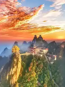Laojun Mountain in winter is famous for its magnificent snowy scenery. Snowflakes fall, covering the mountains, trees, and buildings with a layer of silver, creating a picturesque fairyland. Especially the Golden Summit architectural complex, where the golden roofs contrast beautifully with the pure white snow, adding a sense of mystery and solemnity. This unique natural landscape attracts many visitors for sightseeing and photography, hence it is called the "Season of Deification."