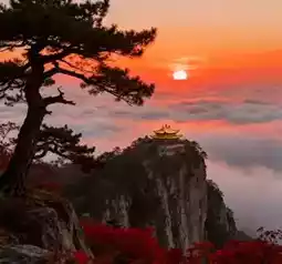 Golden Summit Shines in Autumn Light: Morning light outlines the Golden Summit, with a sea of clouds rolling like a painting, as if you are in a fairyland.
