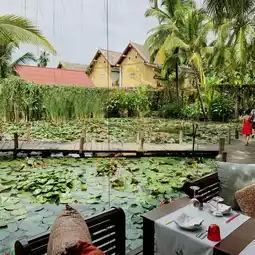 A romantic restaurant with lily pond