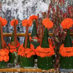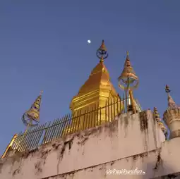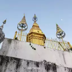 The highlight of Phousi Temple is the pagoda in the shape of a square golden lotus, approximately 21 meters high, set on a square base with a seven-tiered golden umbrella. To pay homage to the pagoda, you have to climb 328 steps. The area around the pagoda is also a viewpoint of Luang Prabang that offers a 360-degree view of the Mekong River and the Khan River. Most tourists like to walk up to the pagoda in the evening. Because it is not hot and we can also wait to watch the sunset on the top of Mount Phousi, which is a very beautiful sunset viewing point.
