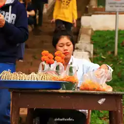 Every New Year's Day, there is a tradition of giving alms to monks on the top of Mount Phousi, which is a long-held tradition.