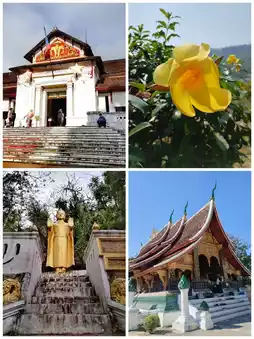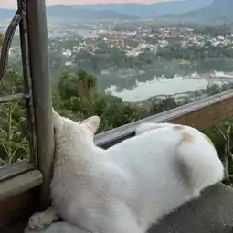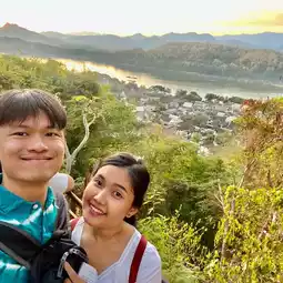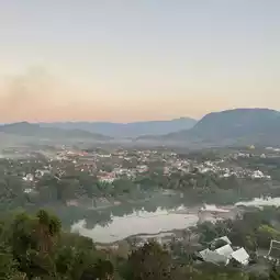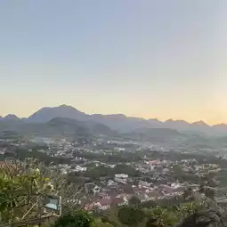 Anyone who comes to Luang Prabang must not miss watching the sunset from Wat Phousi, the most sacred Luang Prabang tourist attraction located on the highest area of Luang Prabang. When walking up the stairs, which are higher than 328 steps, to the golden pagoda, including the temple with many Buddha images for you to worship and ask for blessings. In addition, from Wat Phousi, we will see the image of Luang Prabang alongside the Khan River and the Mekong River, surrounded by mountains. Tourists like to come up to see the beauty in the evening. The atmosphere is very good. The view is so beautiful that you will forget the tiredness from walking up. #LuangPrabang #Phousi #LaosTravel