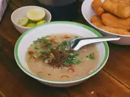 For those who come to visit Luang Prabang, I recommend "Pracha Niyom Coffee Shop", ready to serve delicious morning food to you in a satisfying way. There are both rice porridge, noodle soup, hot and cold drinks and fried dough sticks to make you full and satisfied.