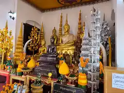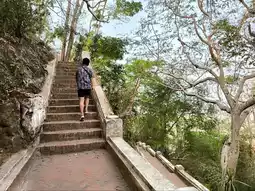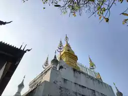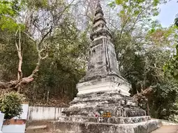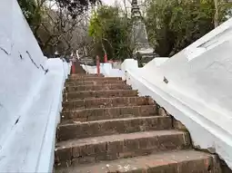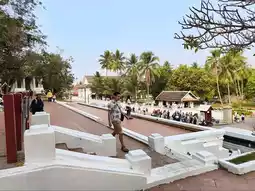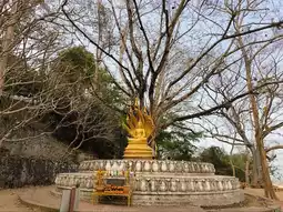 It is located on a high mountain. Before going up, there is a wide area for sitting and relaxing and enjoying the view of the Royal Palace of Luang Prabang. Before going up, there will be a place to buy pee (tickets). After buying, there will be people waiting to tear pee before entering. The way up will be a staircase that alternates left and right. It is recommended to warm up your body first because the path is quite steep. There are rest stops at intervals. In the middle, there is a bathroom. At this point, there is another chedi and there is a high angle view of the city, houses and the Mekong River.