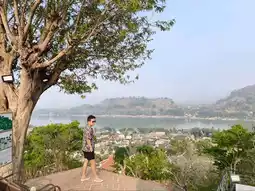 Highlights – 2 photo spots that are rocky. The background image will be a high angle view. You can see the houses of Luang Prabang. In the evening, many foreigners will come up to watch the sunset at this spot. It's so relaxing to come up here.