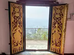 Outside, there is a 270-degree view of the entire Luang Prabang. It is beautiful. You can see both the mountains and the Mekong River. Great atmosphere
