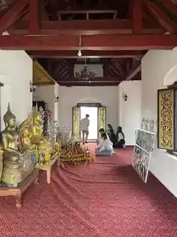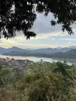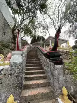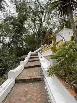 Tourist attractions - Phu Si is considered an important landmark of Luang Prabang. Every tourist must come here. On top of Phu Si, there is the That Phu Si. The surrounding area is considered a temple area. There are sculptures of Buddha images, Naga, and various gods along the walkway. To get here, you have to be physically fit because it is quite steep but not difficult to climb. You can walk up in many ways, both in front of the palace, along the Khan River, and behind Wat Pa Kae. The entrance fee is 5,000 kip per person. There will be a ticket collector on top (walk up about halfway and there will be a ticket office). #luangprabang #laos