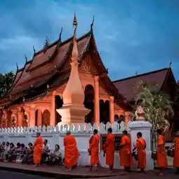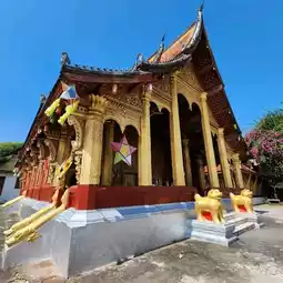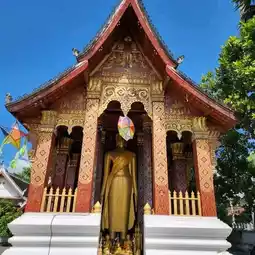 🛕 Wat Saen Sukharam or Wat Saen has its origins according to the legend that more than three hundred years ago, the construction of this temple was started with a hundred thousand kip from donors as the initial capital. It was built 11 years after Luang Prabang separated from Vientiane. It was built in the 15th century. Wat Saen has been renovated twice. The last time, it was decorated with gold leaf patterns.