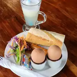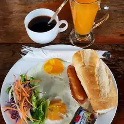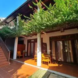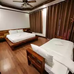 It's time to check in to the accommodation. This trip, there were 5 of us, so we booked 2 rooms, one for 2 people and one for 3 people, for 2 nights. The accommodation is a 2-story building made of cement and wood, decorated simply and pleasing to the eye.