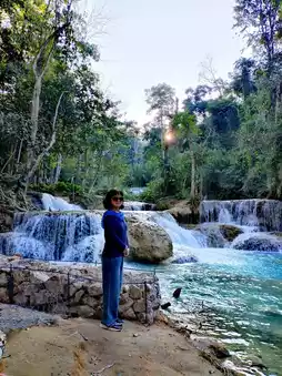 Laos has only two seasons: dry and rainy. The dry season is from November to April, when the weather is neither too hot nor too cold, making it the best time to visit Laos. I visited Laos in mid-December, which was the perfect time to see the waterfall. The unique karst landscape makes the water cascading down the mountain as blue as the sky, similar to the Huanglong Scenic Area in China. I admired the terraced waterfalls, the green pools under the waterfalls, and the tenacious vitality of the trees soaking in the water. Every step I took was a beautiful photo opportunity. Visiting here not only provides great photos but also a good mood, truly making you reluctant to leave.