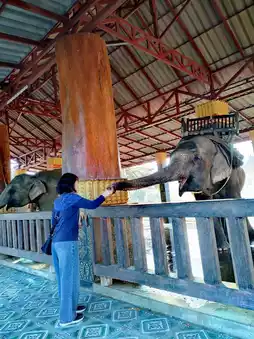 Laos is also known as the "Land of Elephants." Elephants are considered auspicious, sacred creatures in the hearts of the Lao people, and the capital is named Vientiane. On the way back from Kuang Si Falls, I passed by the Luang Prabang Elephant Camp and had a close encounter with elephants. It was a great experience to feed the elephants. The elephants were very gentle, slowly extending their soft trunks and leisurely putting food into their mouths. An elephant eats 150 kg of food every day, so the bananas and sugarcane I offered were just small snacks for these giants.