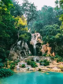 Famous attractions in Luang Prabang, Laos: Kuang Si Waterfall, suitable for checking in and taking photos📸
