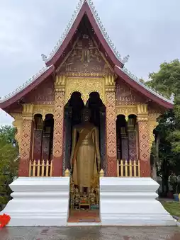I visited Wat Sensoukharam, a peaceful temple built in 1718. Its red walls and golden details are beautiful, and the calm atmosphere made it a perfect spot to relax.