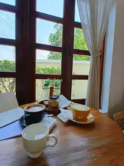 A cozy, minimalist-style café in the heart of Luang Prabang. Spacious air-conditioned indoor seating makes it perfect for relaxing, working, or escaping the heat. Staff are friendly and helpful.
