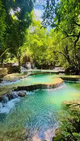 Located 30 km southwest of Luang Namtha, Kuang Si Waterfall is a multi-tiered cascade where water plunges over limestone formations, creating a series of refreshing, swimmable turquoise pools. Describing it as "Eden-like" still falls short of capturing its beauty. If you prefer not to swim, you can enjoy lunch at the park's shaded picnic areas with tables. Don’t miss the free Kuang Si Bear Rescue Center (located within the waterfall area; admission included with the waterfall ticket), where rescued Asian black bears, saved from poachers, are given a new lease on life.