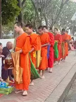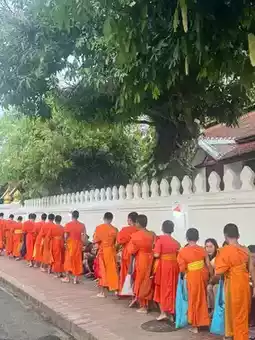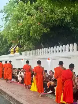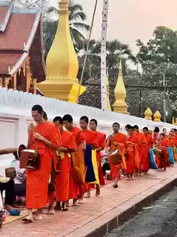 The morning in Luang Prabang begins with the alms-giving ceremony, a thousand-year-old tradition preserved by Theravada Buddhist monks that has become a must-experience ritual for global visitors to Laos. Barefoot monks in orange robes carrying tin bowls receive sticky rice and snacks from devotees and tourists, then share the surplus with animals and street children... This simple yet profound cycle delivers a spiritual awakening.