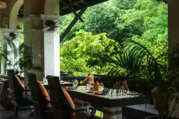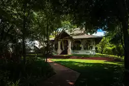 The Dong River flows past Rosewood Luang Prabang, also known as the "River of a Thousand Elephants." This area was once home to elephants, hence the poetic name. The hotel is nestled between the Dong River and rolling mountains, with the riverbank serving as a natural wall and secret garden, quietly shielding it from the bustle of the outside world.