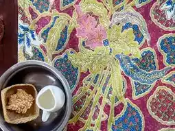 The first thing that catches your eye when you enter the store are the fabrics and decorations reminiscent of Indonesian batik patterns.