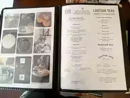 The menu also includes traditional Lao drinks such as tamarind juice, lemongrass tea, and pandan leaf drinks.