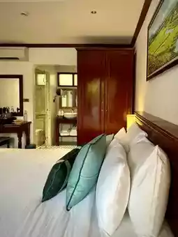 🧩 Large rooms, divided into houses in the Luang Prabang style. The main structure is made of polished wood, decorated in a local style but with a modern touch, whether it's a tiled bathroom, bathtub, large king-size bed, very comfortable to sleep in.